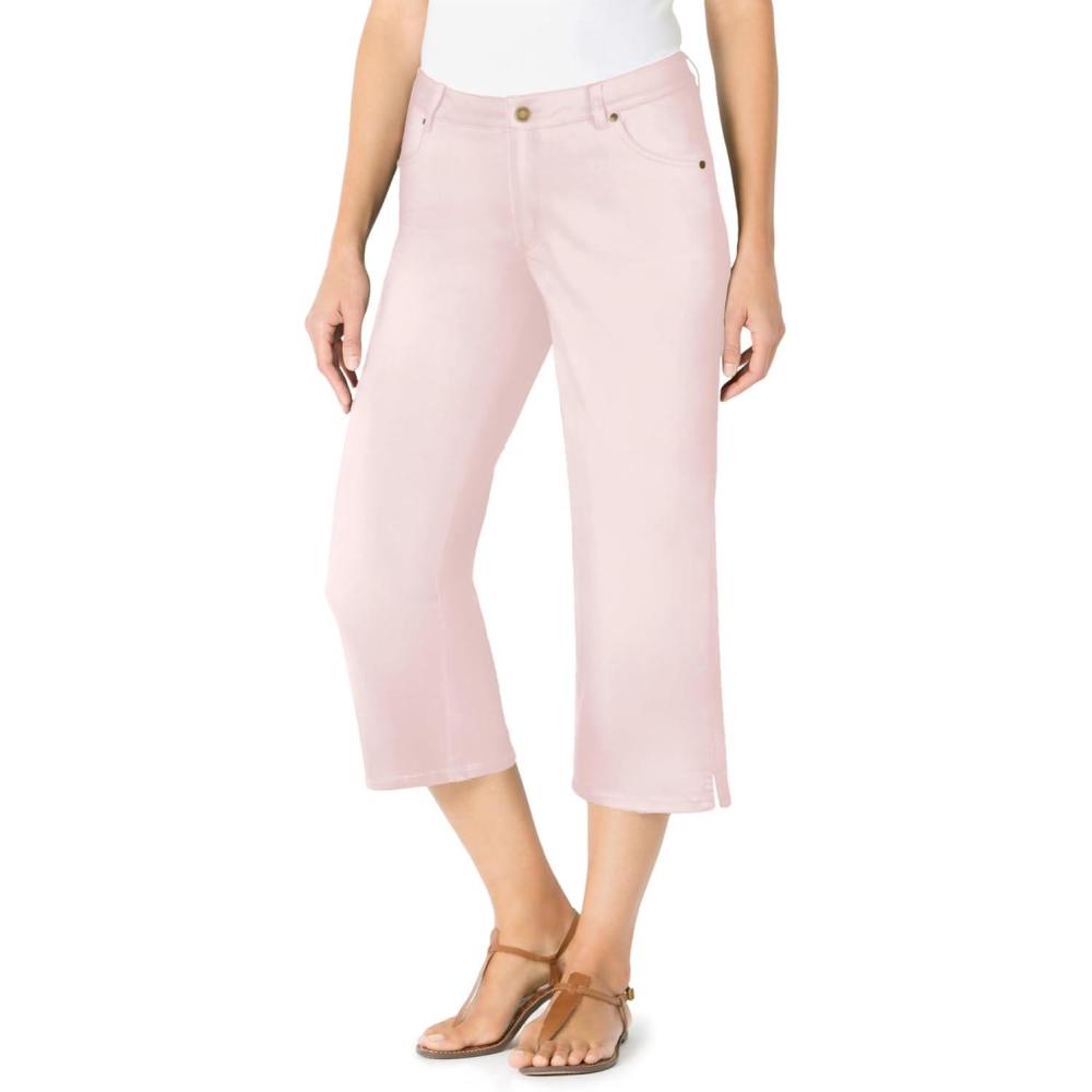 Woman Within Plus Size Stretch Denim Five-Pocket Capri Jeans(Delicate Pink)