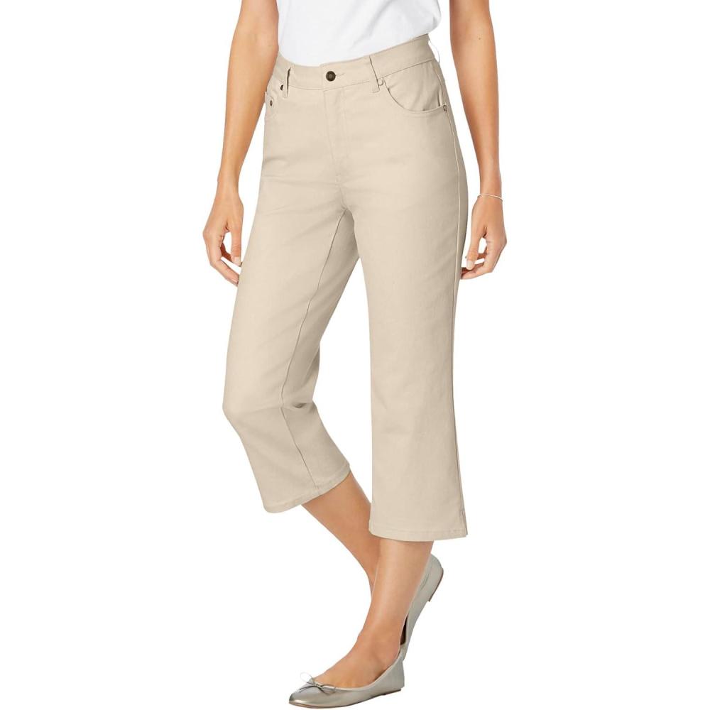 Woman Within Plus Size Stretch Denim Five-Pocket Capri Jeans(Natural Khaki)