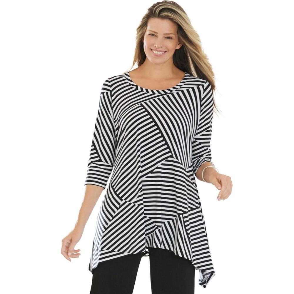 Woman Within Plus Size Swing Hem Tunic(Black Patch Stripe)