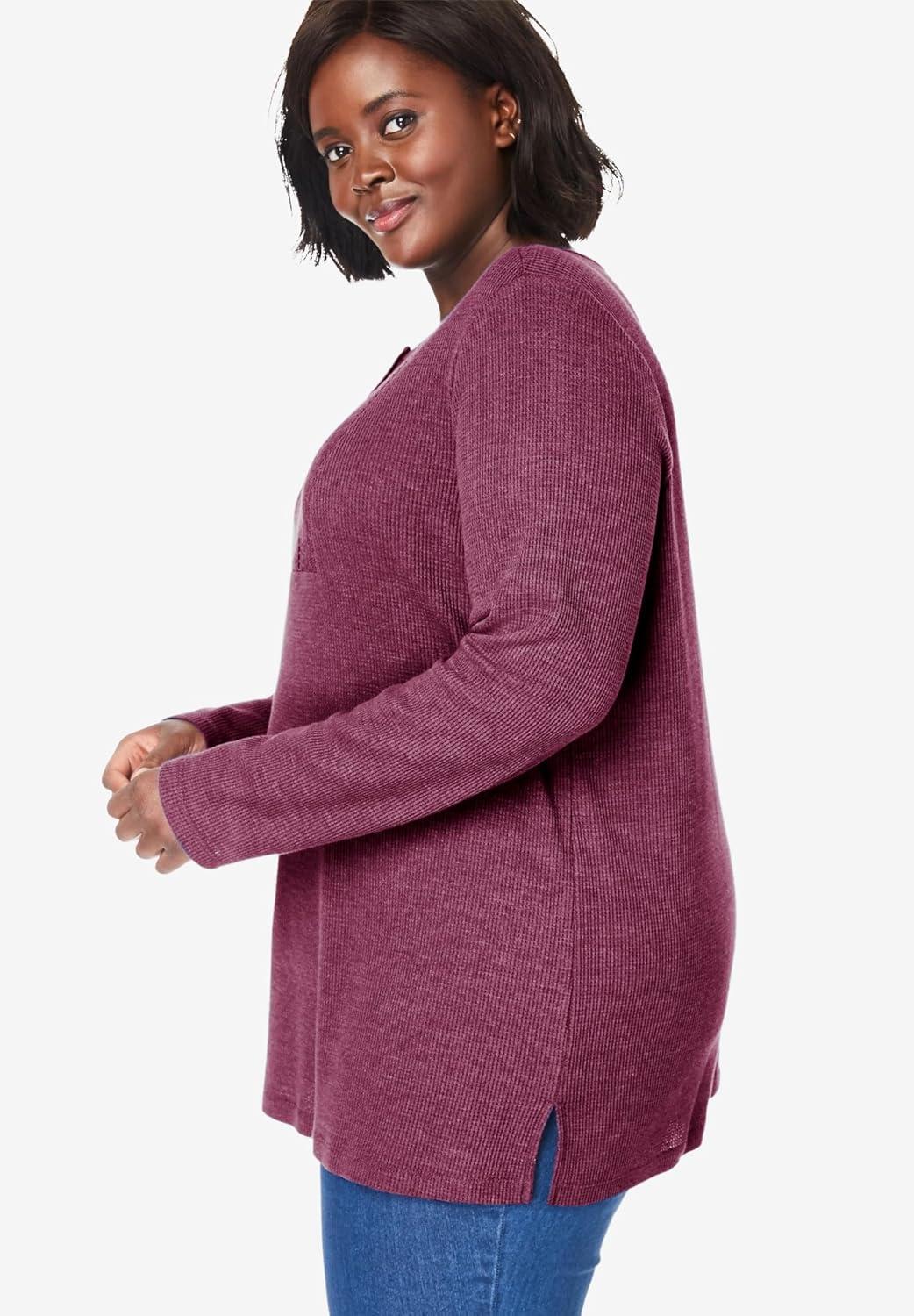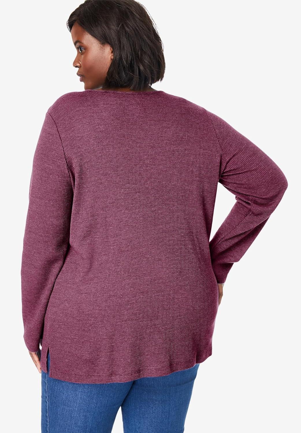 Woman Within Plus Size Waffle Thermal Lace Bib Henley Tee(Evening Blue)