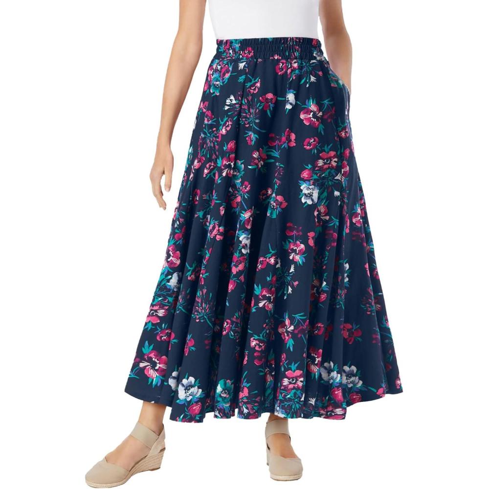 Woman Within Plus Size Wide Elastic Waist Skirt(Navy Painterly Floral)