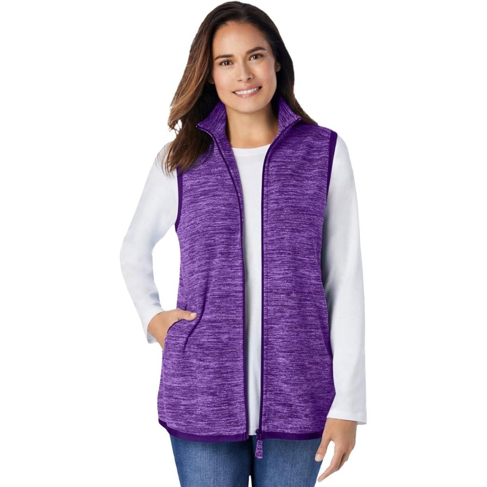 Woman Within Plus Size Zip-Front Microfleece Vest Long Fleece Vest(Radiant Purple Marled)