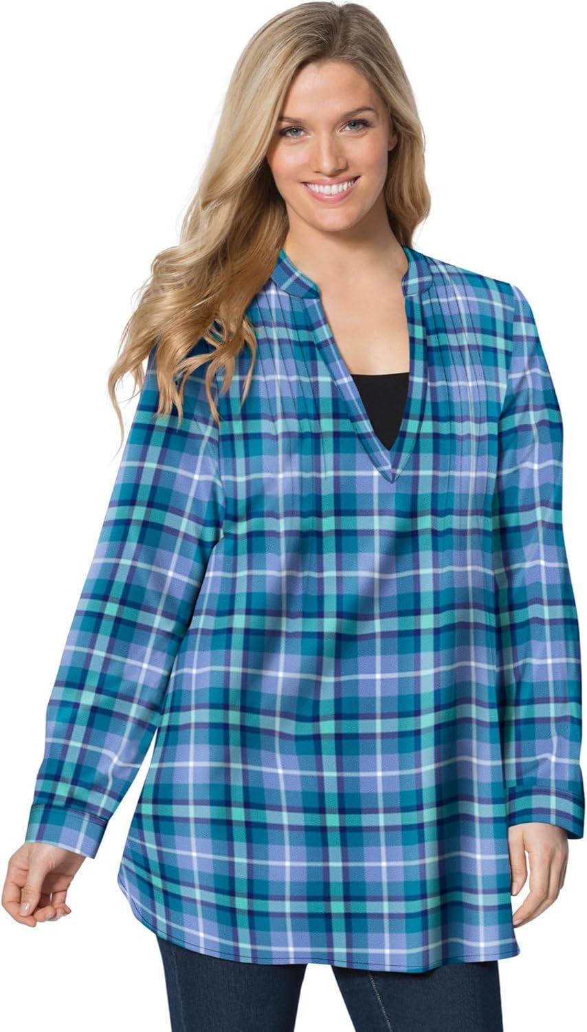Woman Within Plus Size Flannel Tunic With Layered Look(French Blue Cozy Plaid)