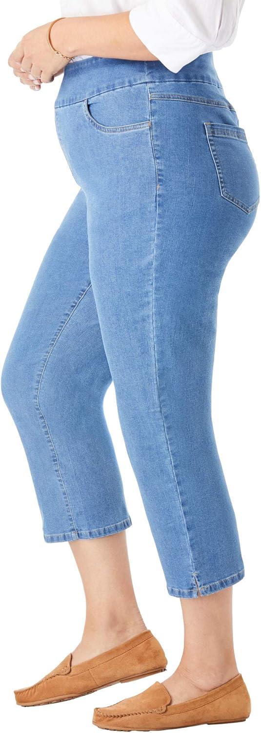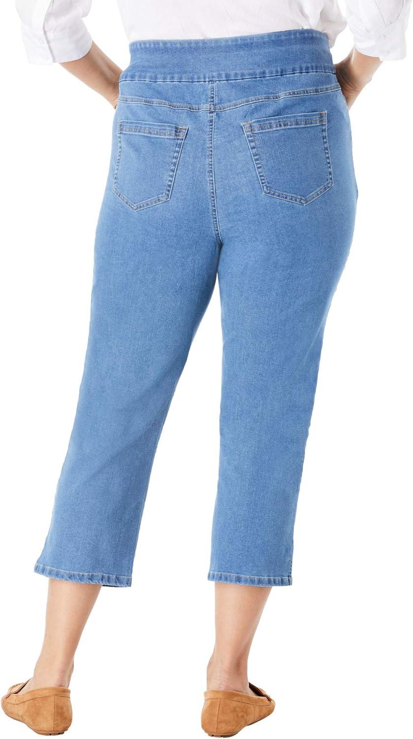 Woman Within Plus Size Pull-On Flex Elastic-Waist Stretch Denim Capri Jeans(Light Stonewash)