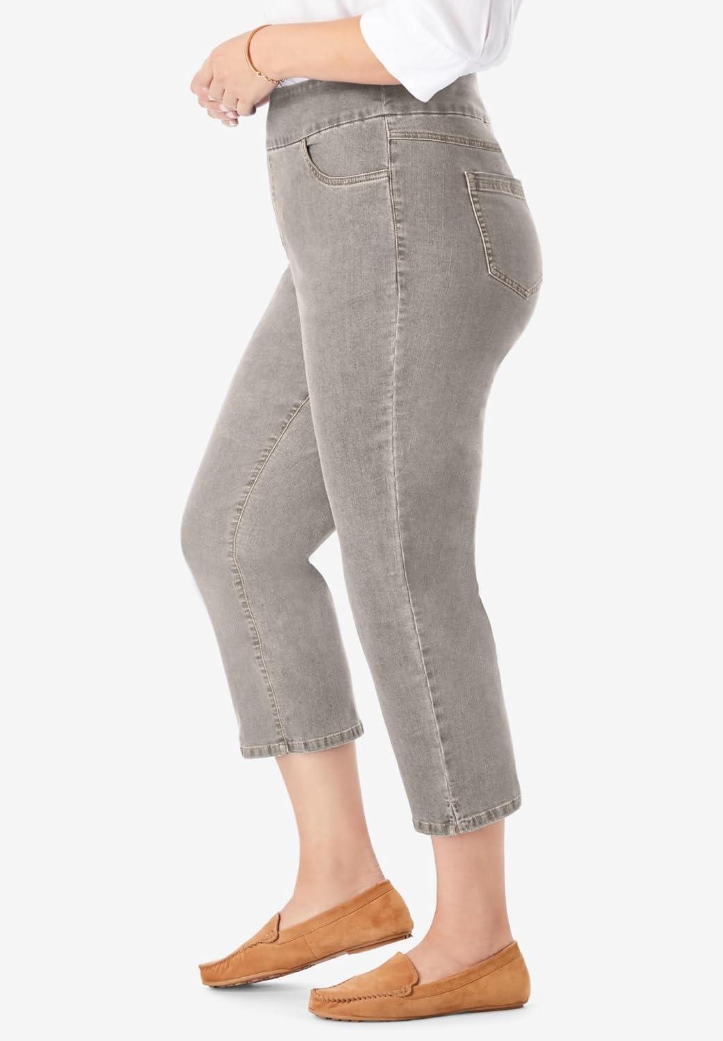 Woman Within Plus Size Pull-On Flex Elastic-Waist Stretch Denim Capri Jeans(Grey Denim)