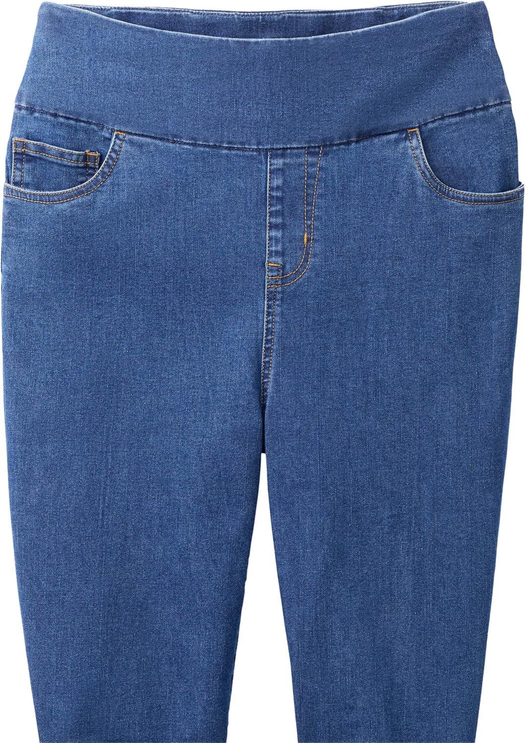 Woman Within Plus Size Pull-On Elastic-Waist Stretch Fineline Denim Jeans(Stonewash Sanded)