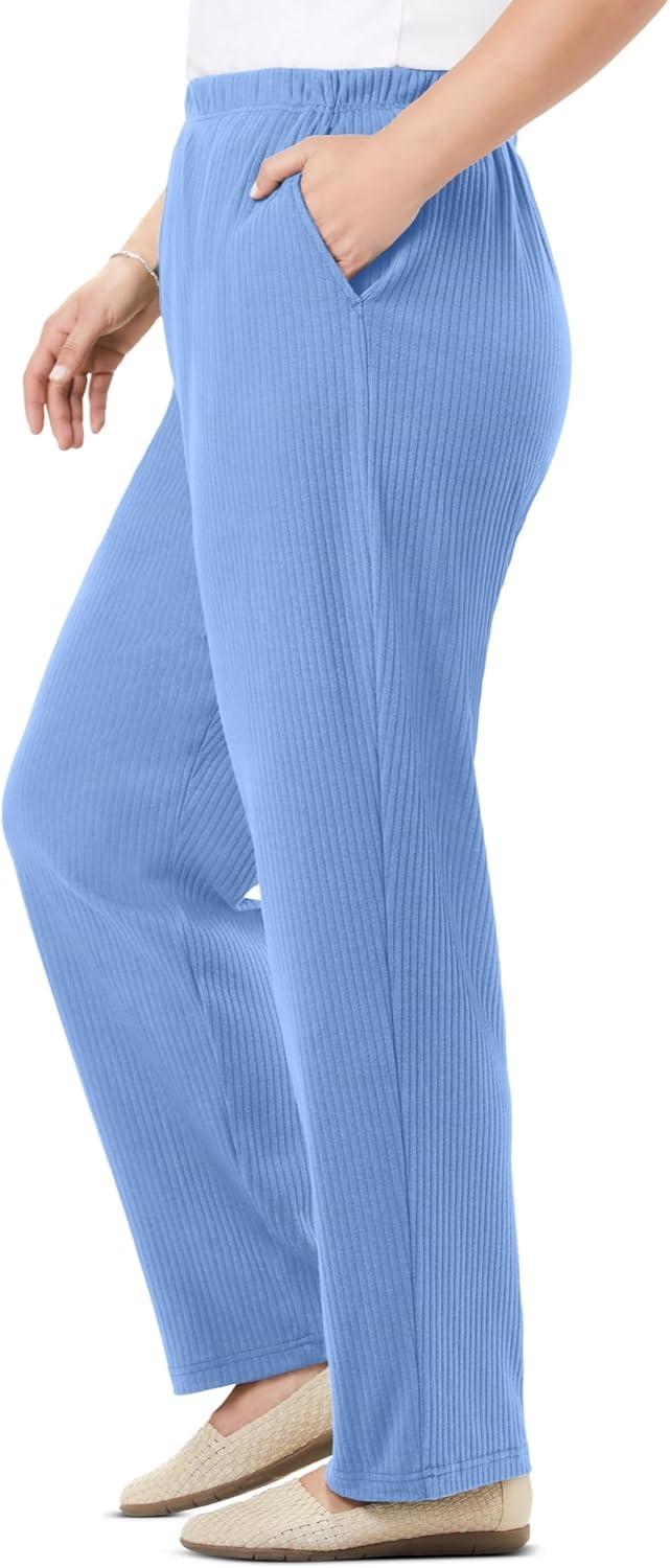 Woman Within Women’s Plus Size Pants Ribbed 7-day Knit(Deep Cobalt)