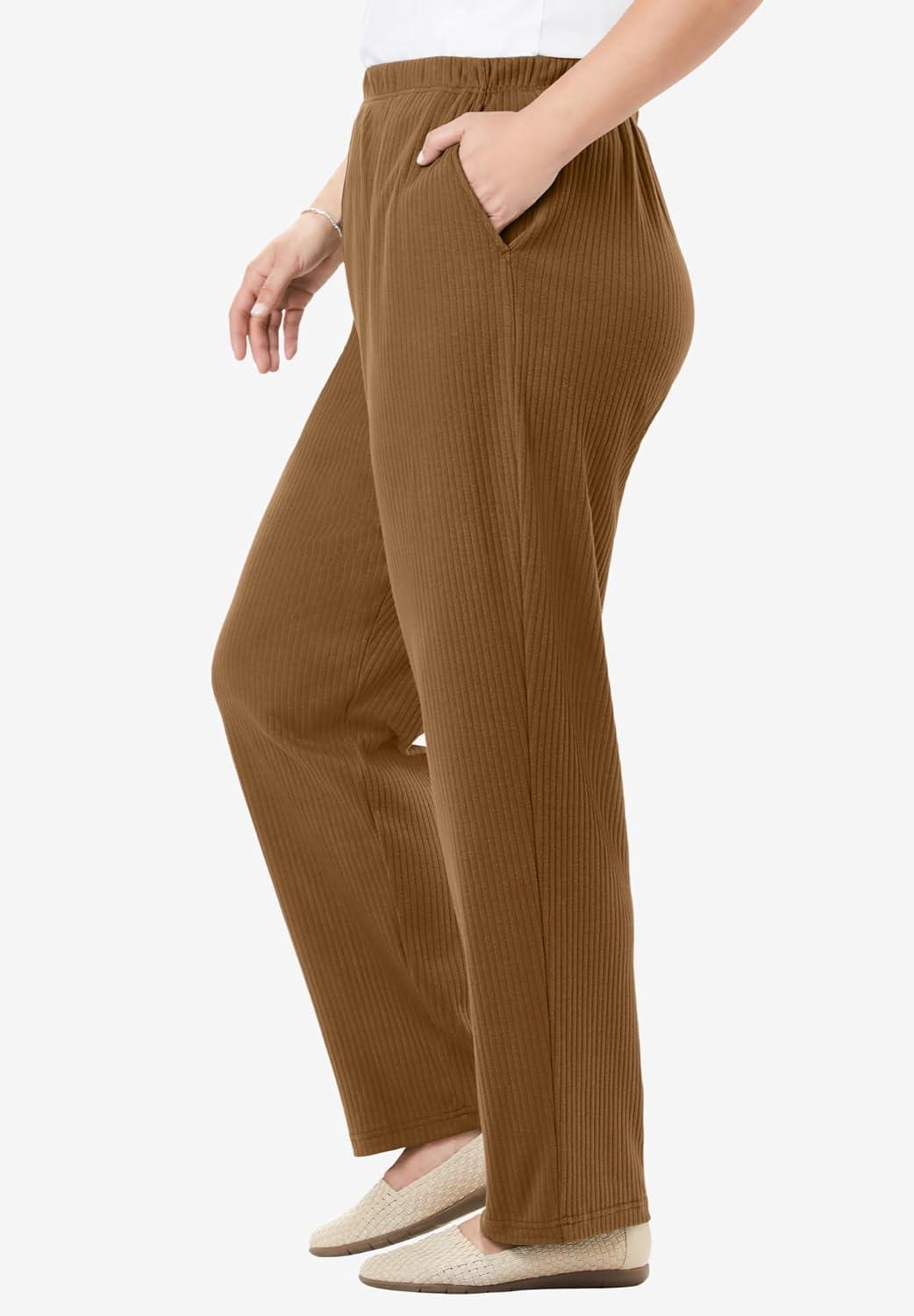 Woman Within Women’s Plus Size Pants Ribbed 7-day Knit(Toffee)
