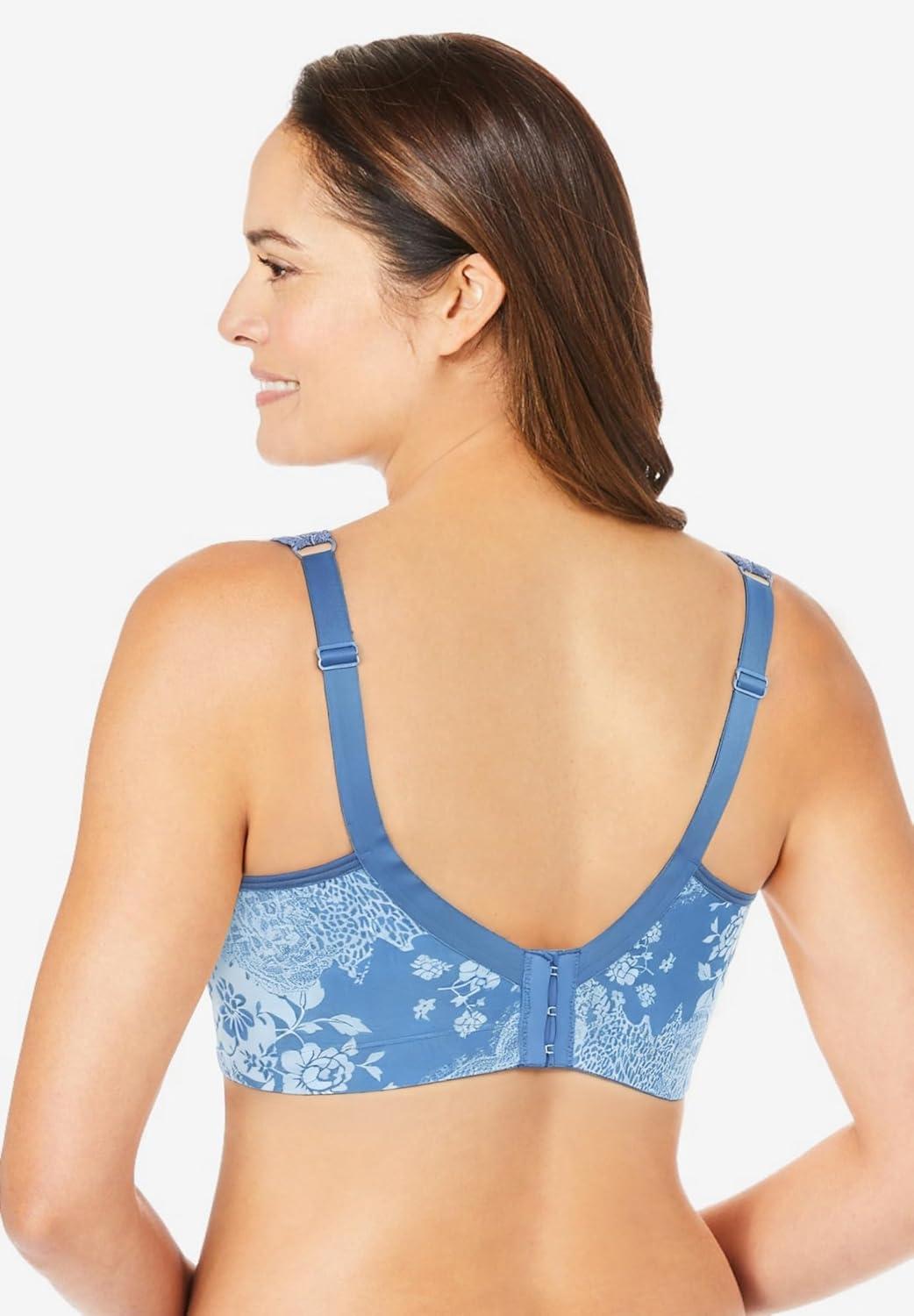 Women’s Plus Size Cotton Comfort Wireless Bra(Caribbean Blue Botanic Floral)