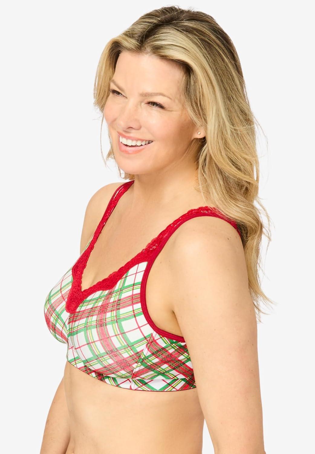 • Women’s Plus Size Cotton Comfort Wireless Bra(Holiday Plaid)